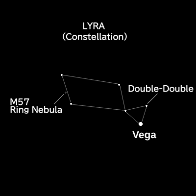 The best way to locate Lyra is to first find Vega, the brightest star in the summer sky, and part of the aforementioned summer triangle. Confirm it is Vega by the nearby stars that form a parallelogram. The ring nebula is located on the side of the parallelogram that is furthest from Vega.