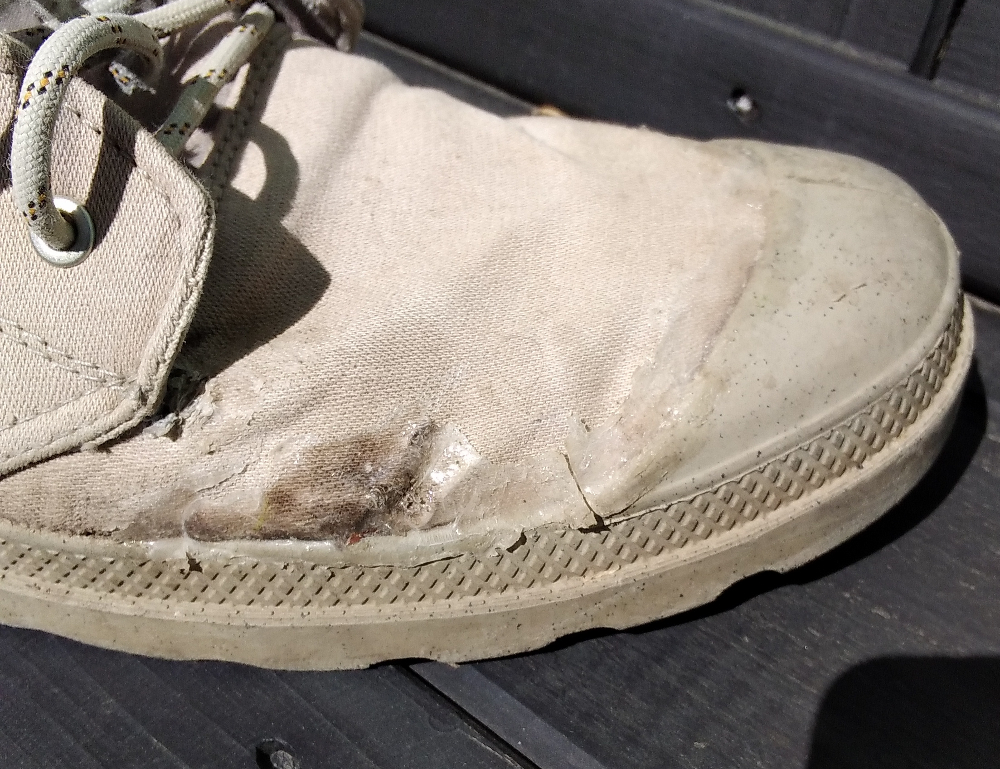 Since then I have worn proper “hiking boots.” My last two boots were Vasque Sundowners and Merrell Moabs. I purchased the Sundowners because they were waterproof and often recommended for backpacking. They were heavy, expensive, but well made. After I outgrew the Sundowners, I purchased “waterproof” Moabs, because I didn’t want to spend another $300 on boots. The Moabs were lightweight, well constructed, but were never waterproof.